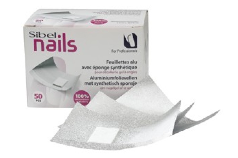 Φύλλα λεπτού αλουμινόχαρτου με συνθετικούς σπόγγους για την αφαίρεση του τζελ νυχιών.